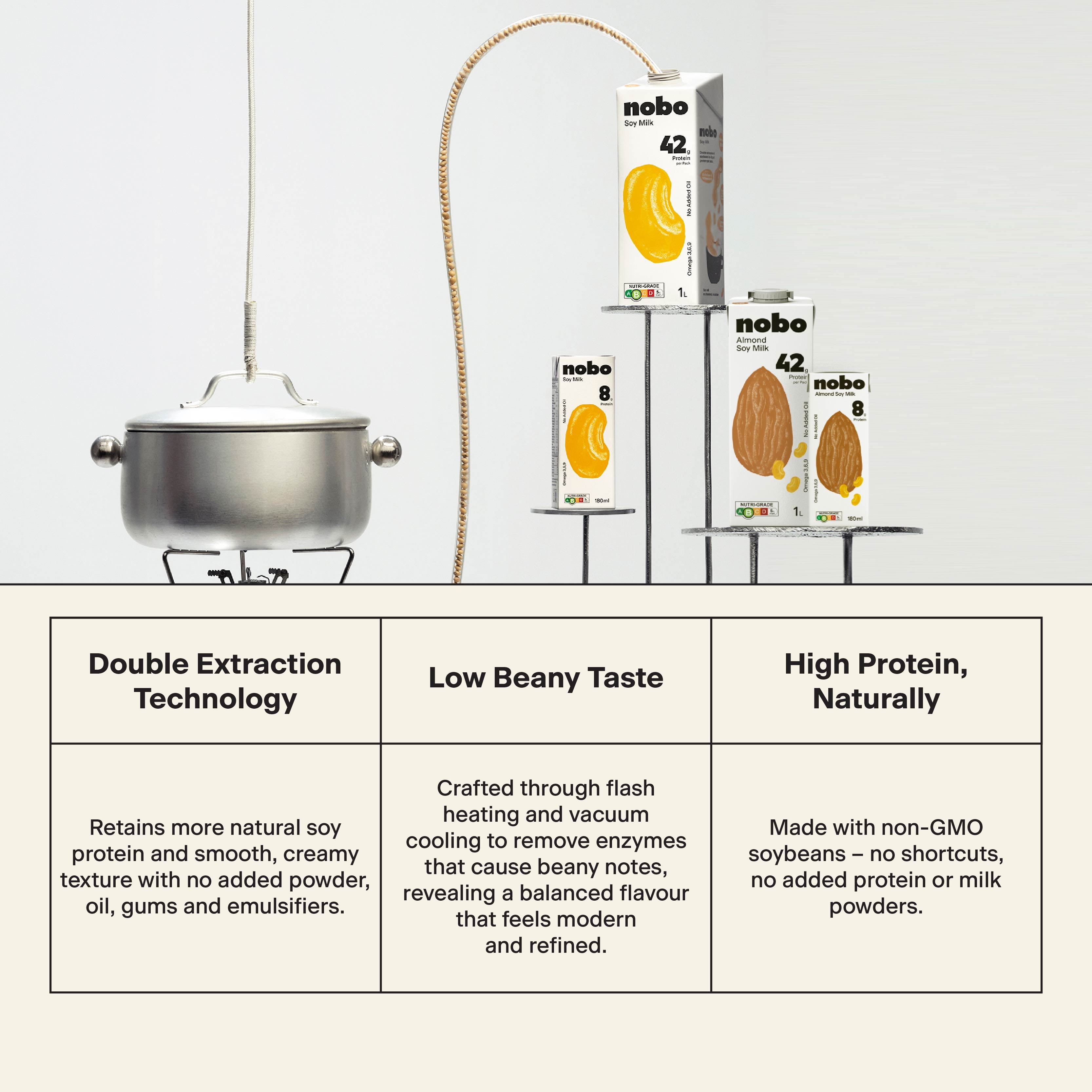 NOBO Soy is a new plant milk brand from the team behind OATSIDE, created to redefine soy milk for modern consumers. Built on clean ingredients, natural protein, and flavour-forward innovation, NOBO Soy delivers soy milk that is honest, intentional, and designed for everyday enjoyment. Perfect for daily nutrition, active lifestyles, high-protein diet, plant-based diet.